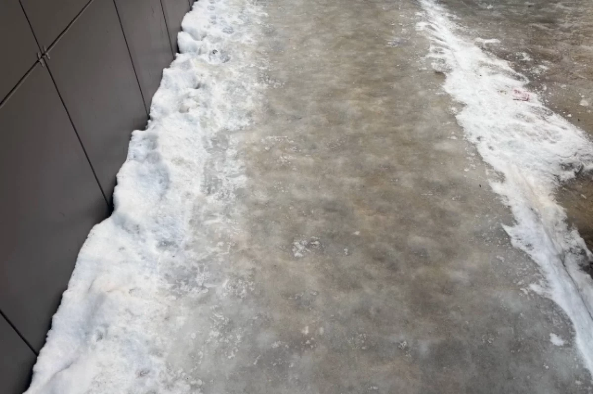 После устранения наледи работники дирекции благоустройства обработали дорожное покрытие пескосоляной смесью.