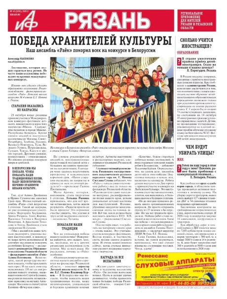 Еженедельник «Аргументы и Факты» № 45. "АиФ-Рязань" 05/11/2025