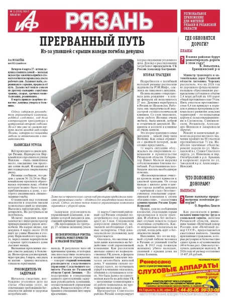Еженедельник «Аргументы и Факты» № 11. "АиФ-Рязань" 18/03/2026