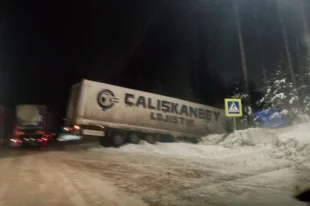 В результате инцидента фура частично заблокировала проезжую часть, что привело к образованию пробки.