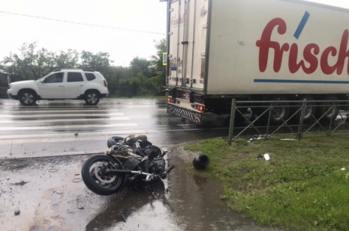 В Рязани мотоциклист врезался в стоявшую на обочине фуру