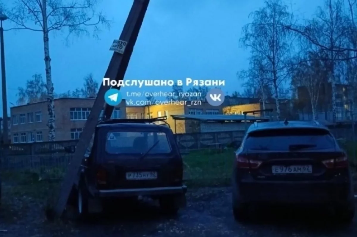 Инцидент случился на улице Сельских строителей, где сильный ветер свалил сухое дерево. По словам свидетелей, оно не только оборвало провода, но и повалило столб, который в итоге уперся в припаркованную рядом «Ниву».