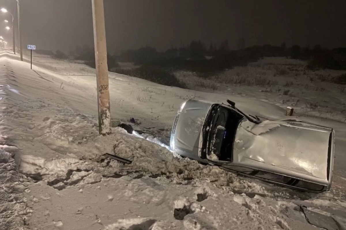 Неуправляемая машина вылетела в кювет, где произошло жесткое столкновение с опорой линии электропередач.