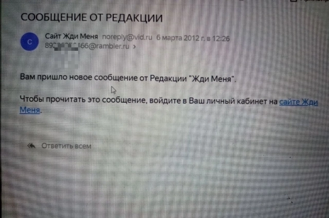 Но однажды Сергей в 2012 году по электронной почте получил письмо: «Вам пришло новое сообщение от редакции „Жди меня“. Чтобы прочитать это сообщение, войдите в Ваш личный кабинет на сайте программы». Наш читатель зашёл. А там информация, что, мол, нашли по вашему запросу вот такого человека. И указан его номер. Как позже оказалось, дядя тоже обратился в эту программу.