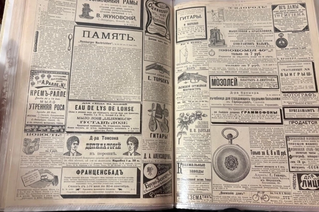 Лучшее украшение каждого сада несомненно — серебристая пихта, которая «совершенно не боится зимней стужи даже в самых холодных местах России». «Превосходное средство от мозолей — пластырь Л. Линтропа. Цена 25 к.». Гитары работы мастера Ф. Пасербскаго, мышеловки и крысоловки и много-много всего. Даже новейшие выкройки юбок из бумаги за 50 коп. высылают наложенным платежом из С.-Петербурга, и визитные карточки с фотографией от 100 шт. 2 руб. можно заказать в Варшаве.