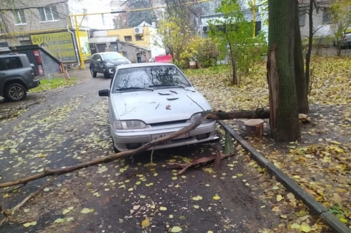 В центре Рязани, около дома № 41 по ул. Есенина, на автомобиль упала ветка дерева.