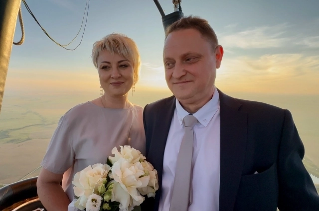 Александр и Екатерина отпраздновали свою свадьбу прямо в воздухе. Рязанцы поженились на воздушном шаре, поднявшись на высоту 1000 метров над землей на закате солнца.